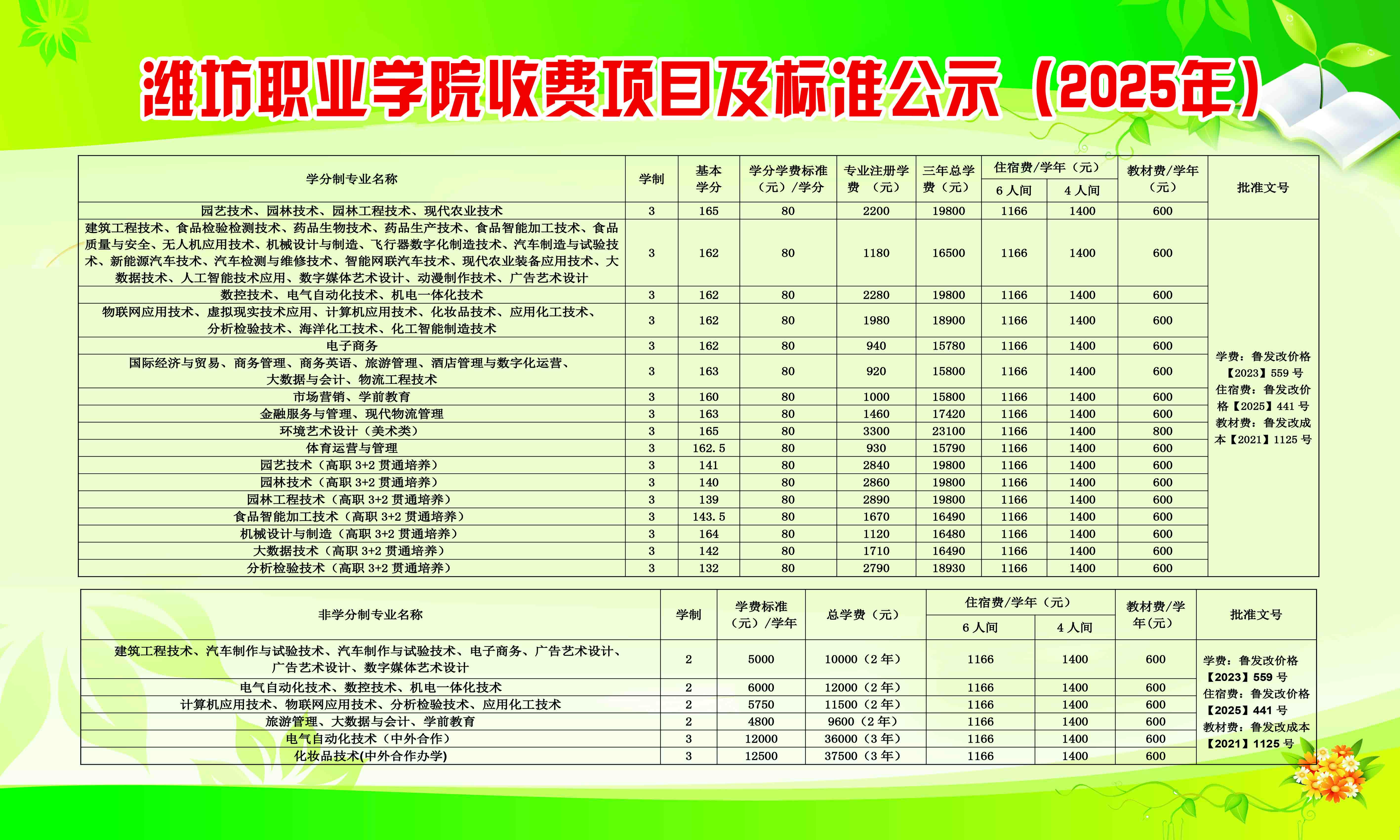 附件【潍坊职业学院收费项目及标准公示(2025年).xls已下载