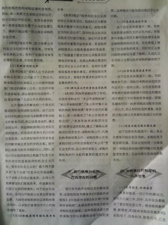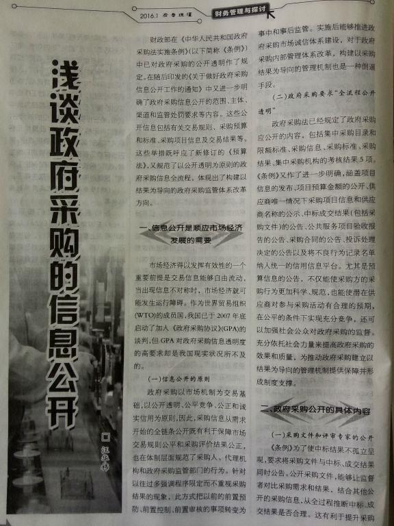 浅谈政府采购的信息公开(摘自齐鲁珠坛)
